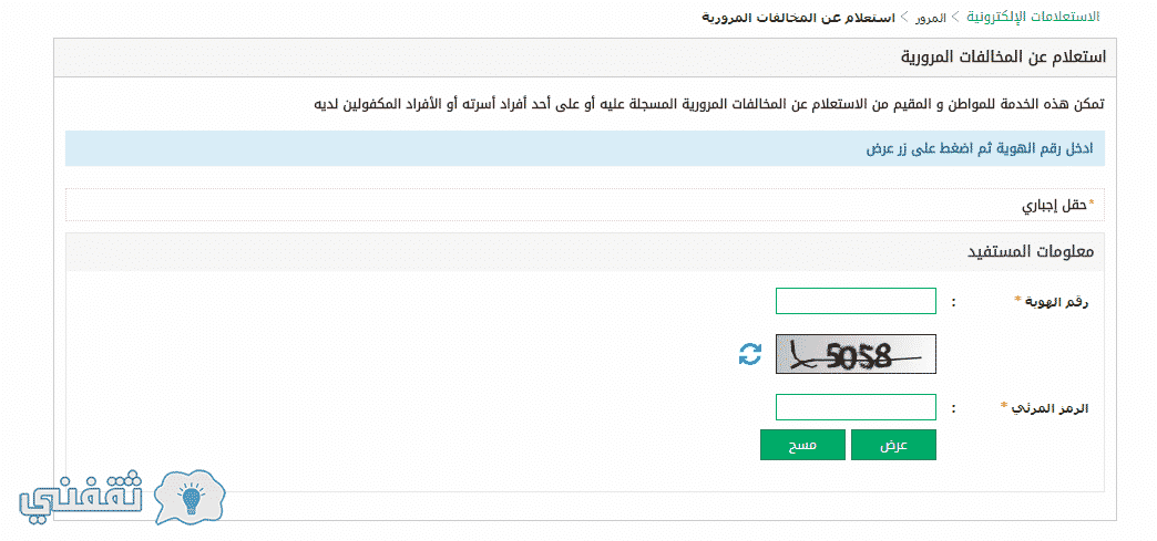أولا: ندخل على موقع الاستعلام عن المخالفات المرورية