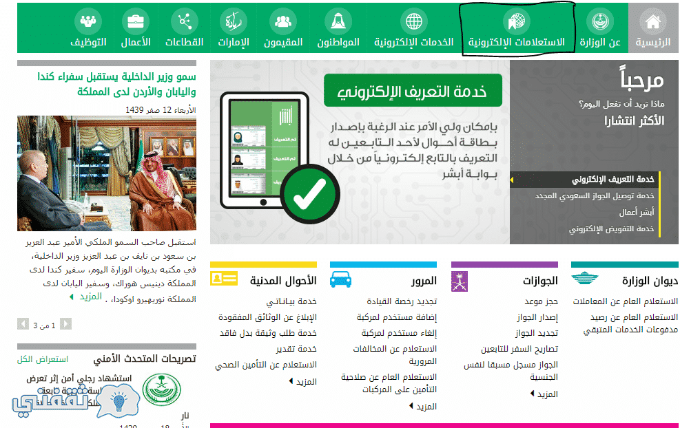 ثانيا: بعد الضغط على الرابط تظهر أمامك أيقونة الاستعلامات الإلكترونية كما هو موضح بالصورة.