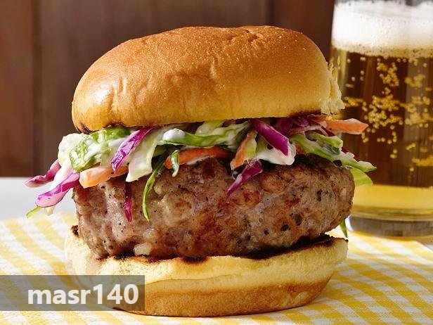 • وقومي بإعداد الساندوتش كالتالي، ضعي الكاتشب والمايونيز على الخبز ومن ثم ضعي كمية بسيطة من الخس الكابوتشا ومن ثم البرجر وفوقه شريحة من شرائح الطماطم الطازجة وفوقها شرائح من البصل، وقدميه ساخنا.