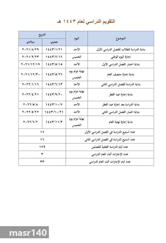 التقويم الدراسي بالسعودية لمدة خمس سنوات مقبلة.