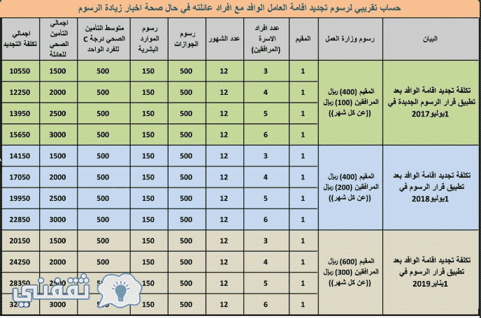 رسوم المقيمين ومرافقيهم خلال الفترة القادمة