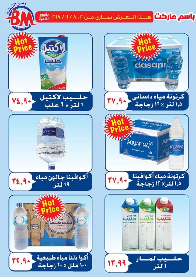وتقدم سلسلة باسم ماركت عرض على حليب لمار 1 لتر بسعر 13.99 جنيهاً، وعرض على أكوا دلتا مياه طبيعية 600 مل عدد 20 زجاجة بسعر 23.90 جنيها، وهناك عرض على حليب بخيره 500 مل بسعر 6.49 جنيهاً، وعرض على ثلج مكعبات جورميه 3 كيلو بسعر 19.90 جنيهاً.